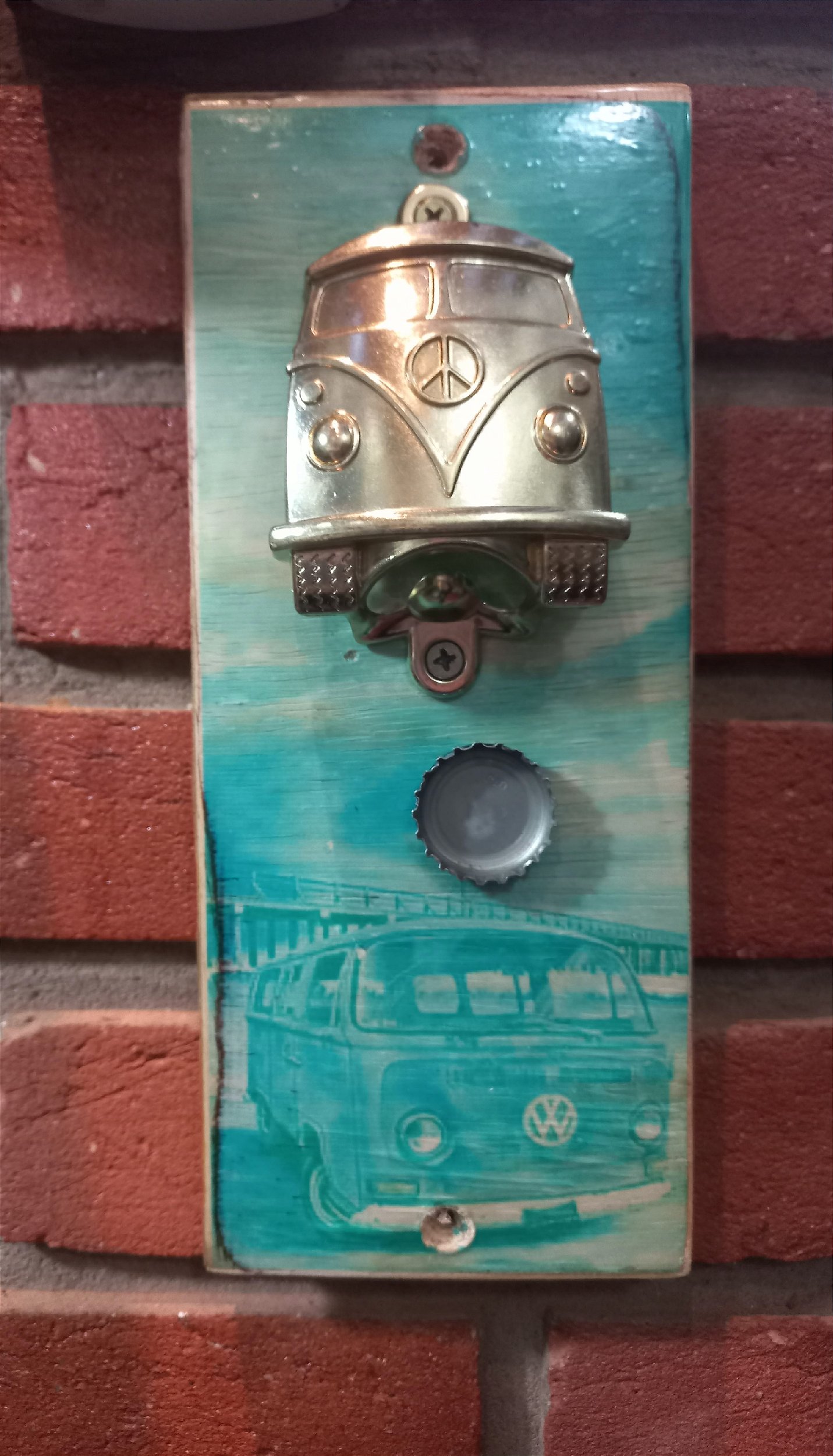 Possui um imã de neodimio embutido que permite que a tampinha seja atraída quando da abertura da garrafa e um abridor metálico no formato de uma Kombi dourada.