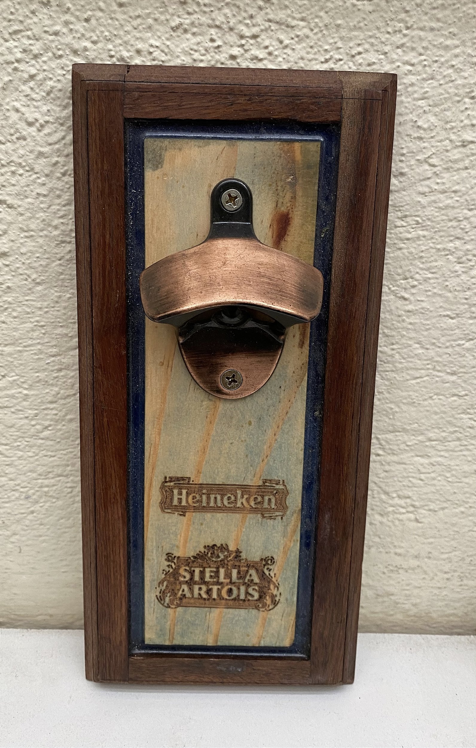 Abridor de garrafa rústico feito de maneira artesanal (contém pequenas imperfeições da própria madeira).
