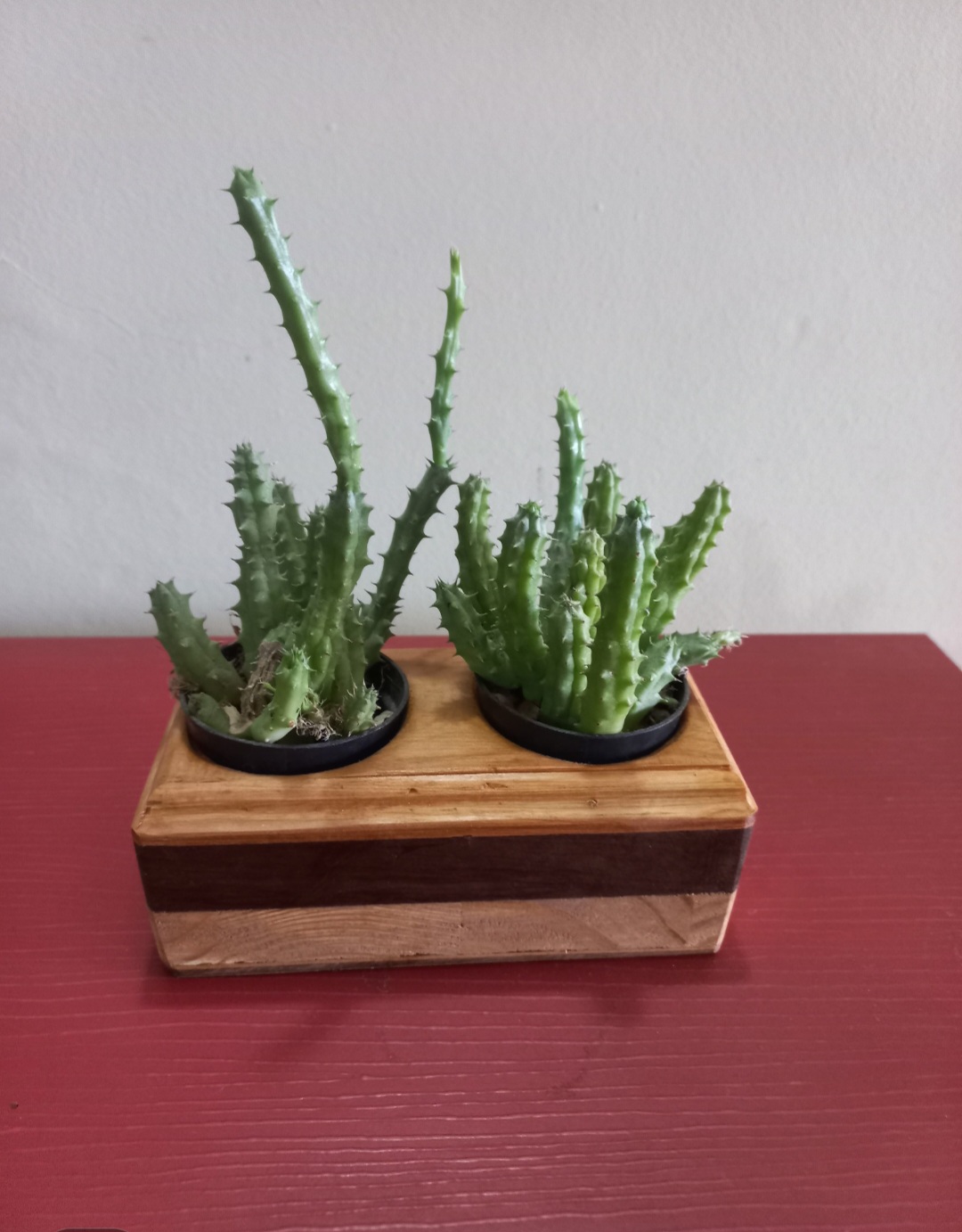 Cachepô para vasinhos de plástico em madeira. Feitos de maneira artesanal (sujeito a algumas imperfeições comum em madeira), envernizado (Para 2 vasinhos)