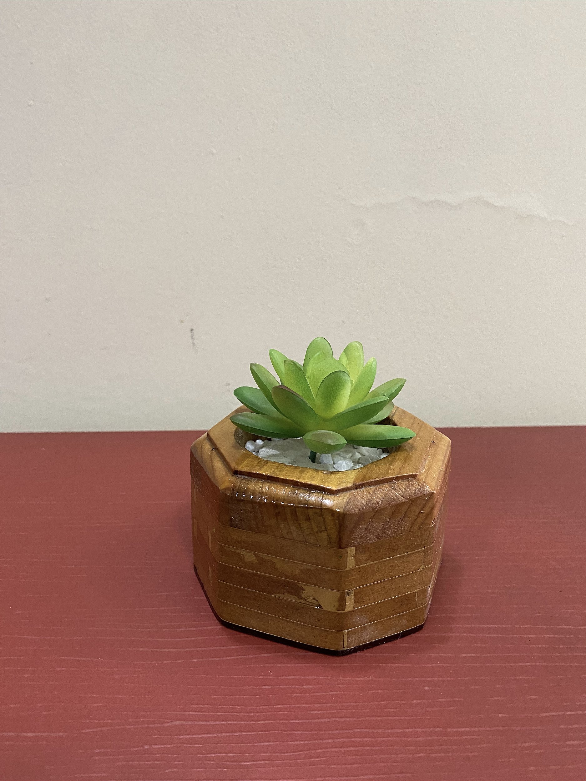 Acompanha uma plantinha decorativa em plástico, inclusa no valor.